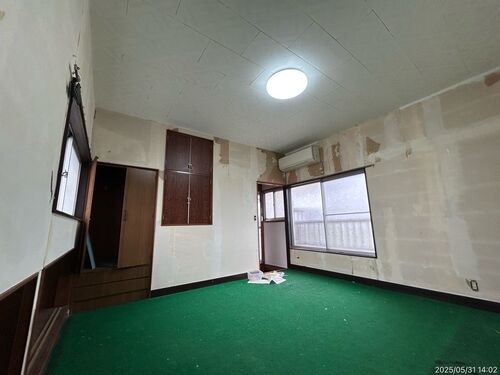 週末株式会社です。 第4号物件のリフォームを進めています。 7月、8月上旬は気温が高くて、 作業能率が上がりません。 それでも作業を少しずつ進めています。 2階洋室は、緑色のカーペットが 貼られていました。 汚れも目立っているので剥がして、 クッショ…
